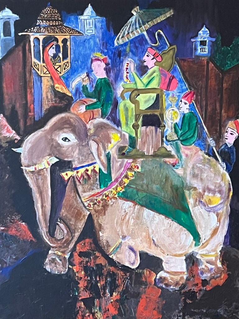 Forty years later the romance continues, and the story of their courtship is memorialized in a painting by Preeti.