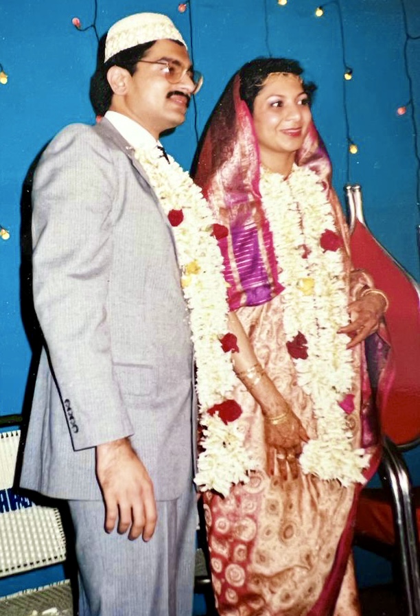 Around this time she was introduced to her future husband Moiz, born and raised in Mumbai and living in Texas. After a whirlwind courtship, they were married three months later in a traditional Indian wedding, replete with all the rituals of henna, gifts, colorful bridal wear and jewels.