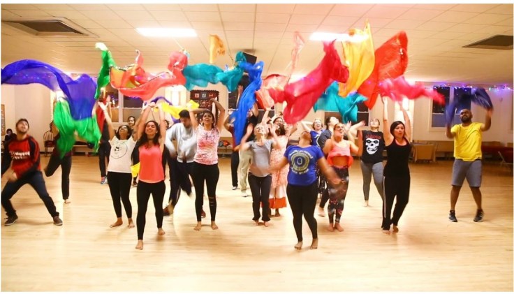 Divya uses dance deliberately to create her own community. In 2012, Divya and two friends approached Tapestry Folk dance center about offering a weekly ‘drop-in’ class: ‘Bollywood Dance Scene’, which soon became the most popular offering at Tapestry. The group started performing around town, and charged a small fee to cover expenses for their weekly dance programs. Dance sessions were devoted to one routine, from introduction to performance, and open to both beginners and dancers at all skill levels, offering a new experience at each session.