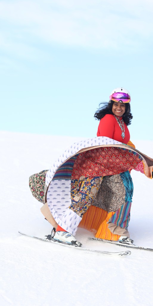 Divya’s skiing in a sari is captured in a short video through the You Tube link: https://youtu.be/ytCyQ4mTTpM?si=TEL5h9wY-w5JweYm