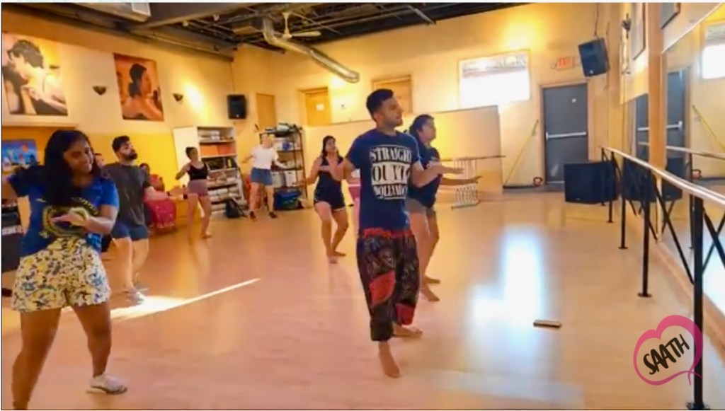 SAATH has continued to teach dance since 2012, and the joy that Bollywood dancing elicits draws the wider public to her weekly ‘drop-in’ dance classes held on Thursday nights. They are inclusive, and welcome folks of every gender, identity and race. There are returning dancers who know each other, the music, and the dance moves well, and newcomers who are made to feel a core part of the group On average, there are 25 attendees who exuberantly respond to the vibrant music and choreography of the South Asian continent. Divya draws from a pool of about 20 choreographers who keep the classes fresh using different styles, language, dance movements and music.